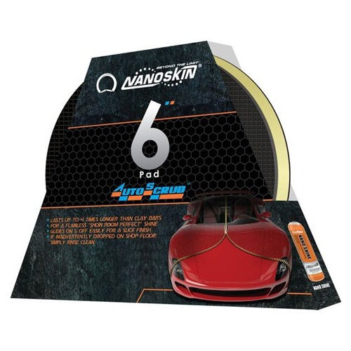 NANOSKIN AUTOSCRUB System works fast and achieves professional results with the new advanced rubber polymer technology, which replaces the use of clay bars. With either dual action orbital polisher or hand application, it safely and easily removes paint over spray, water spots, fresh tree sap, rail dust and other bonded surface contaminants from the surface of automotive paint, glass, moldings and plastic. Unlike the clay bar, the AUTOSCRUB can be cleaned by simply rinsing off the accumulated contaminates with water. If you drop the AUTOSCRUB on the ground, no worries, just rinse the sponge pad clean and you're ready to keep using it. Easy glides allows for sturdy and controlled handling, unlike clay bars where constant reshaping is required.