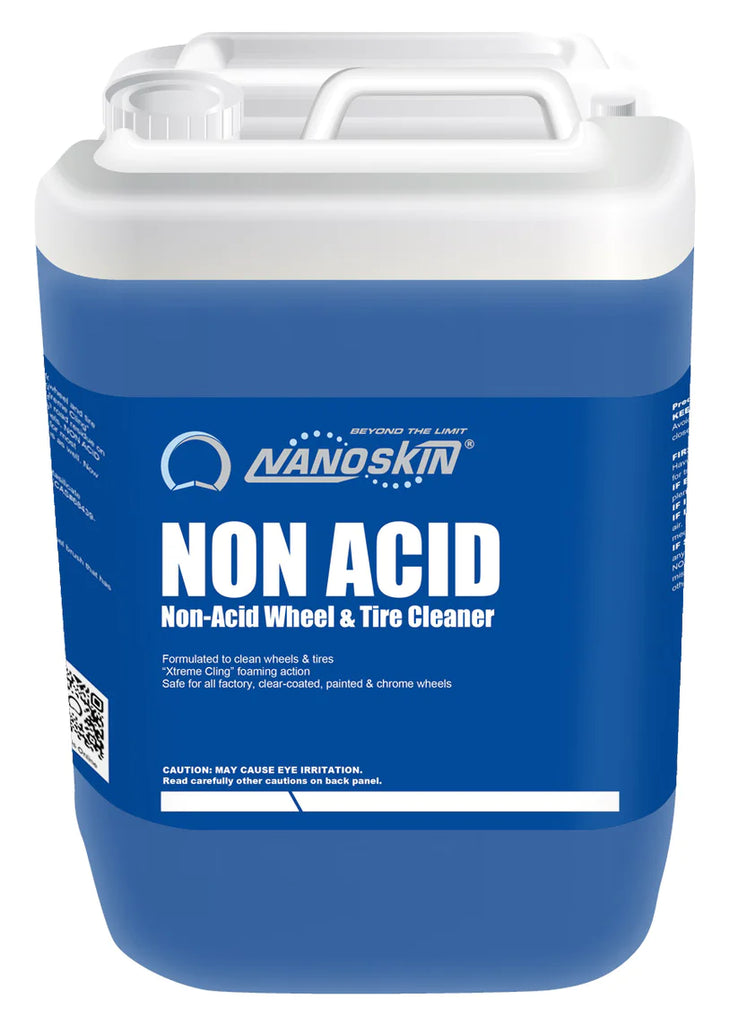 NANOSKIN NON ACID Non-Acid Wheel & Tire Cleaner is a professional-grade wheel and tire cleaner that forgoes caustic acids and instead relies on smart chemistry. Our "Xtreme Cling" foaming action is designed to cling to vertical surfaces and break down stubborn road residue on wheels & tires. Designed to clean clear coated, factory painted and chrome wheels, NON ACID enables you to save time and maximize profits by relying on one wheel cleaner for most applications. Like the name implies, NON ACID removes dirt and grime from tires as well. Now that 's what we call a great value! |